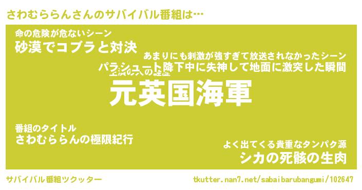 | 伝説のあだ名 | 『伝説のスナイパーさわむららん』 |