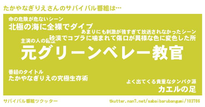 | 伝説のあだ名 | 『伝説のスナイパーたかやなぎりえ』 |