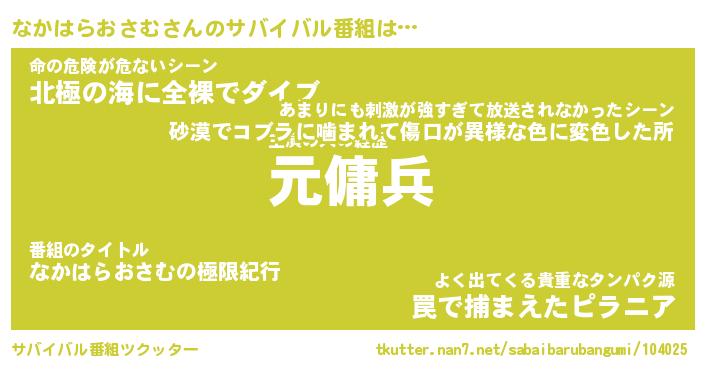 | 恥ずかしいあだ名 | 『プリティーなかはらおさむ』『なかちん』 |