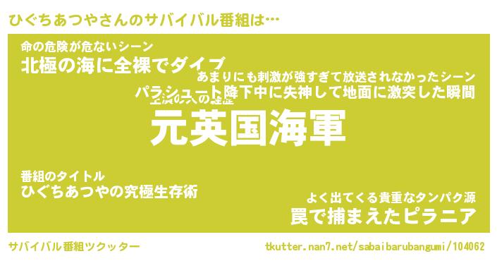 | 伝説のあだ名 | 『伝説のスナイパーひぐちあつや』 |