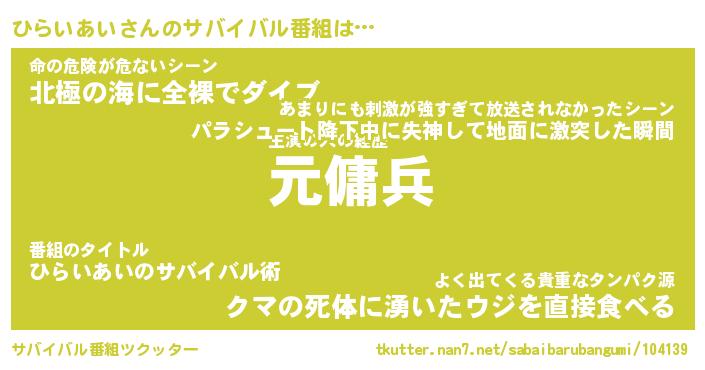 | ヒーロー風カッコイイあだ名 | 『スーパーヒライアイ』『銀牙騎士ヒラ』 |