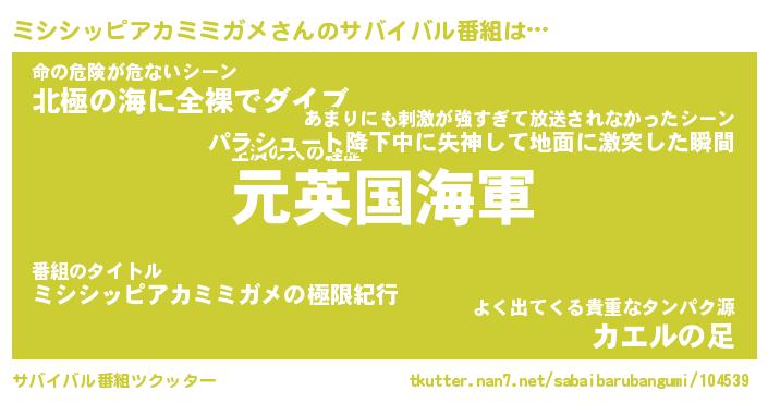 | 肩書あだ名 | 『ミシシッピアカミミガメ御曹司』 |