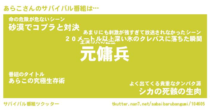 | ヒーロー風カッコイイあだ名 | 『スーパーアラコ』『ウルトラあらこマン』 |