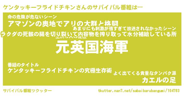 | 胡散臭い通販商品みたいなあだ名 | 『必ず成功するブレスレット…その名も「ケンタッキーフライドチキン」』 |