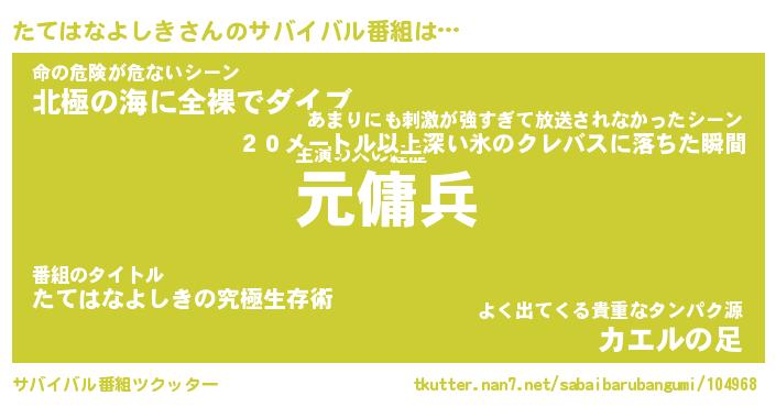 | 伝説のあだ名 | 『封印されしスナイパーたてはなよしき』 |