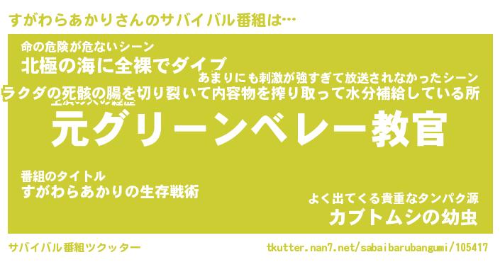 | 胡散臭い通販商品みたいなあだ名 | 『必ず成功するブレスレット…その名も「すがわらあかり」』 |