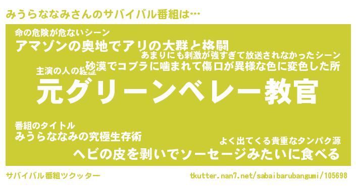 | ヒーロー風カッコイイあだ名 | 『スーパーミウラナナミ』『幻影騎士ミウ』 |