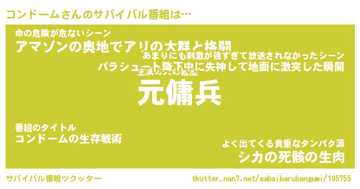 | ヒーロー風カッコイイあだ名 | 『スーパーコンドーム』『暗黒騎士コン』 |