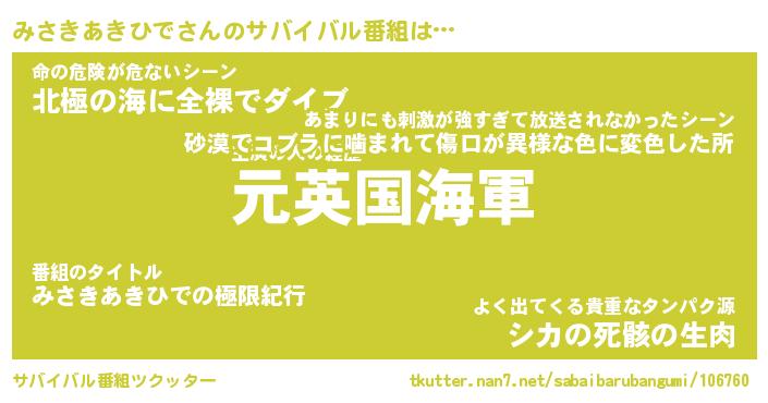 | 伝説のあだ名 | 『伝説のスナイパーみさきあきひで』 |