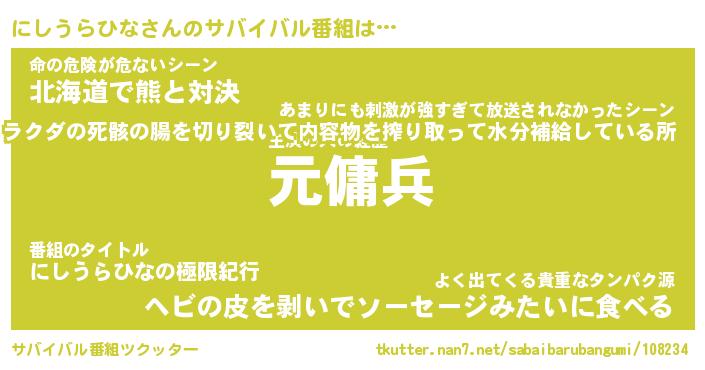 | 胡散臭い通販商品みたいなあだ名 | 『億万長者になれるブレスレット…その名も「にしうらひな」』 |