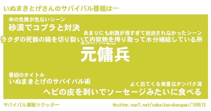 | 胡散臭い通販商品みたいなあだ名 | 『億万長者になれるブレスレット…その名も「いぬまきとげ」』 |