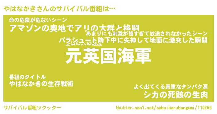 | 伝説のあだ名 | 『伝説のスナイパーやはなかき』 |