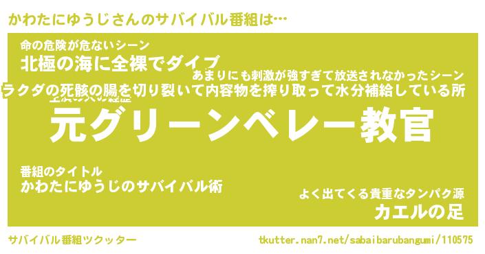 | 胡散臭い通販商品みたいなあだ名 | 『必ず成功するブレスレット…その名も「かわたにゆうじ」』 |