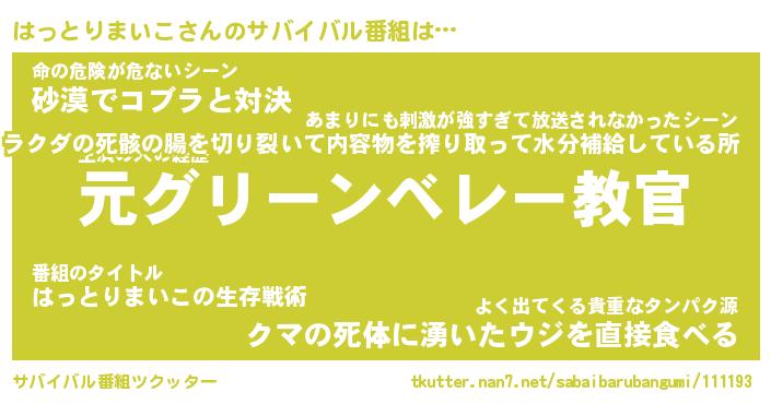 | 胡散臭い通販商品みたいなあだ名 | 『必ず成功するブレスレット…その名も「はっとりまいこ」』 |