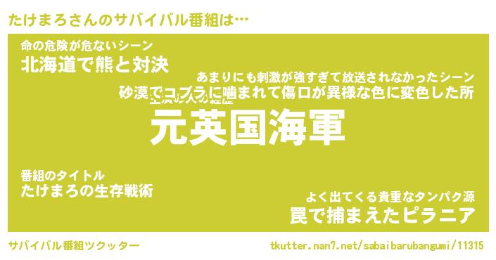 | ヘコむあだ名 | 『たけにゅー』『なまこ酢』『たけを』 |