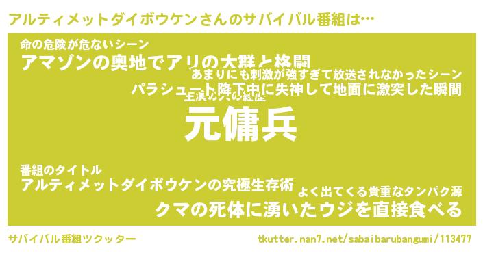 | 胡散臭い通販商品みたいなあだ名 | 『億万長者になれる水晶球…その名も「アルティメットダイボウケン」』 |