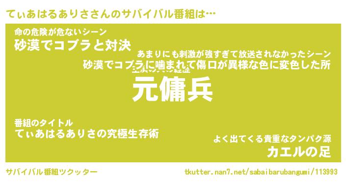 | 胡散臭い通販商品みたいなあだ名 | 『億万長者になれる霊験あらたかなお札…その名も「てぃあはるありさ」』 |