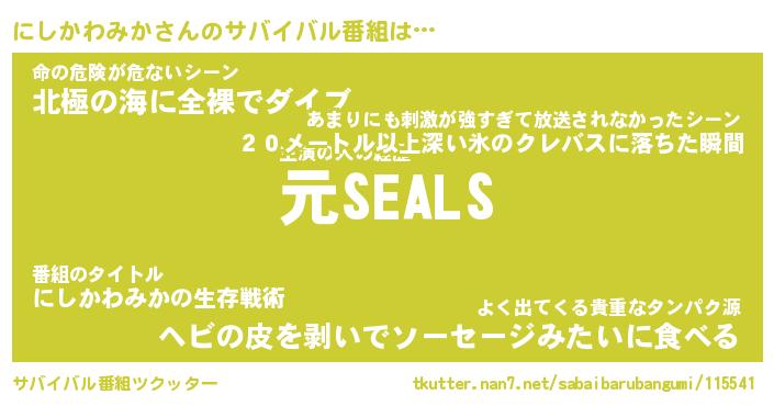 | ヘコむあだ名 | 『にしもー』『つくし』『にしっ子』 |