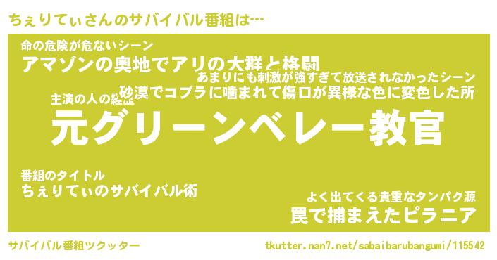 | 肩書あだ名 | 『ちぇりてぃ店長』『ちぇりてぃ総理大臣』 |