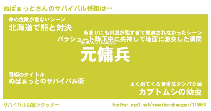 | 伝説のあだ名 | 『封印されしスナイパーぬばぁっと』 |
