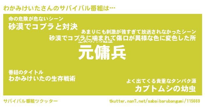 | 胡散臭い通販商品みたいなあだ名 | 『億万長者になれるブレスレット…その名も「わかみけいた」』 |