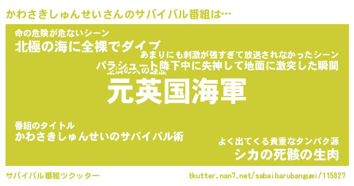 | 伝説のあだ名 | 『伝説のスナイパーかわさきしゅんせい』 |