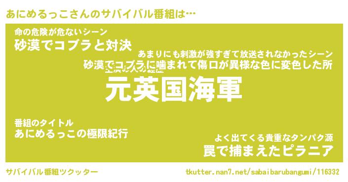 | 伝説のあだ名 | 『伝説のスナイパーあにめるっこ』 |