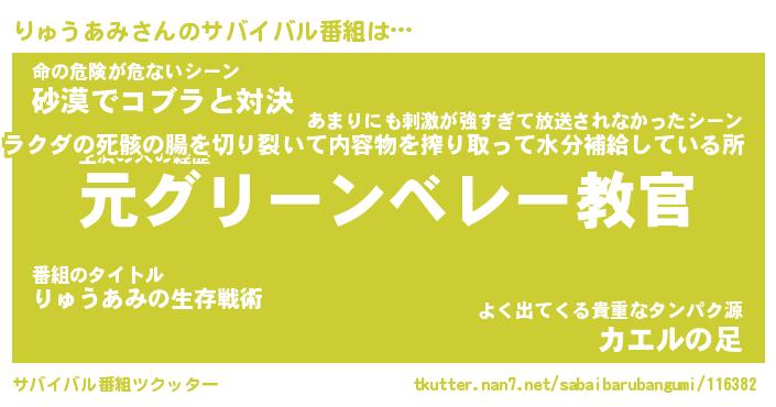 | ヒーロー風カッコイイあだ名 | 『スーパーリュウアミ』『幻影騎士リュ』 |
