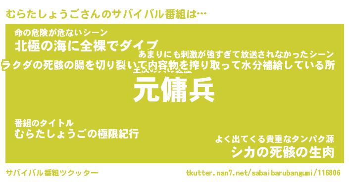 | 胡散臭い通販商品みたいなあだ名 | 『億万長者になれるブレスレット…その名も「むらたしょうご」』 |