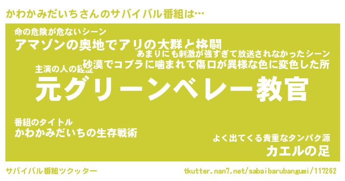 | ヒーロー風カッコイイあだ名 | 『スーパーカワカミダイチ』 |