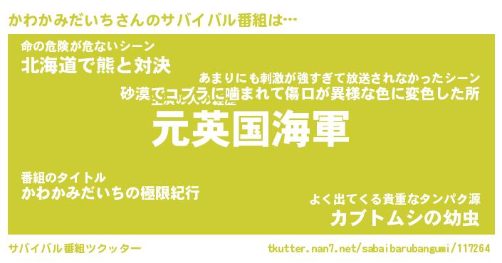 | 伝説のあだ名 | 『伝説のスナイパーかわかみだいち』 |