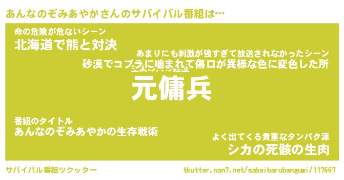 | 伝説のあだ名 | 『封印されし傭兵あんなのぞみあやか』 |
