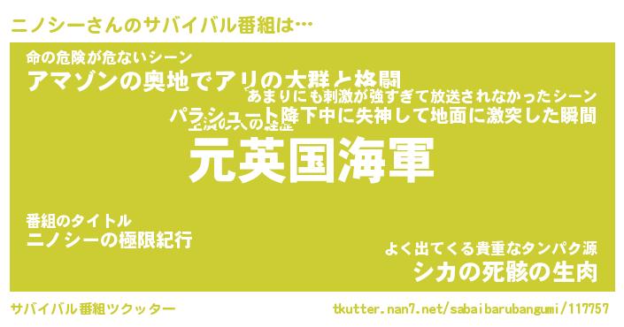 | 意味不明あだ名 | 『ペロリンニノシー』『永久保存ニノシー』 |