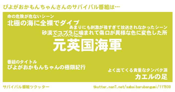 | 伝説のあだ名 | 『伝説のスナイパーぴよがおかもんちゃん』 |