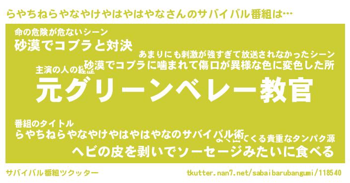 | 伝説のあだ名 | 『伝説の傭兵らやちねらやなやけやはやはやな』 |