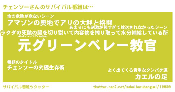 | ヒーロー風カッコイイあだ名 | 『スーパーチェンソー』『炎刃騎士チェ』 |
