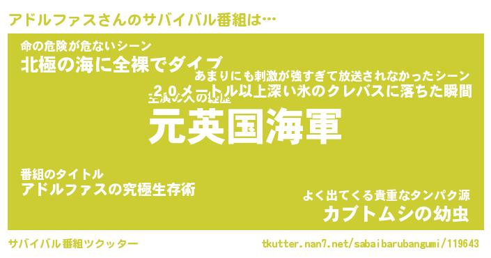 | 胡散臭い通販商品みたいなあだ名 | 『必ず成功するブレスレット…その名も「アドルファス」』 |