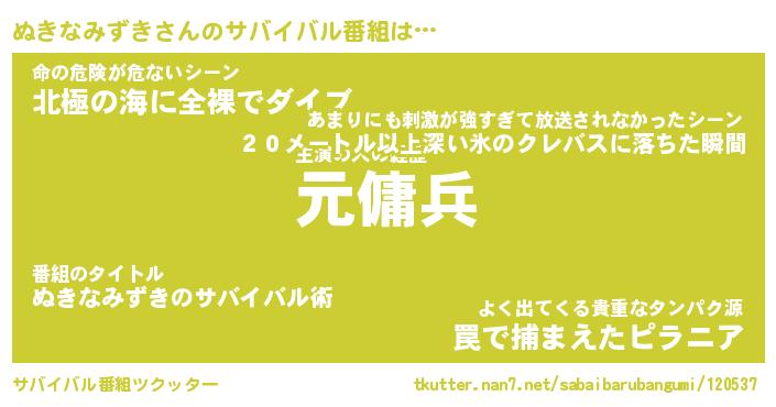 | ヒーロー風カッコイイあだ名 | 『スーパーヌキナミズキ』『天弓騎士ヌキ』 |