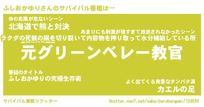 | 胡散臭い通販商品みたいなあだ名 | 『必ず成功する霊験あらたかなお札…その名も「ふしおかゆり」』 |