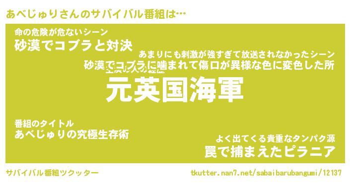 | 伝説のあだ名 | 『伝説の傭兵あべじゅり』 |
