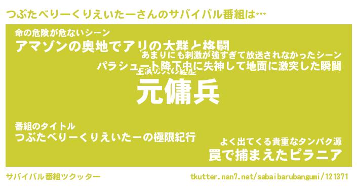 | 胡散臭い通販商品みたいなあだ名 | 『億万長者になれる霊験あらたかなお札…その名も「つぶたべりーくりえいたー」』 |
