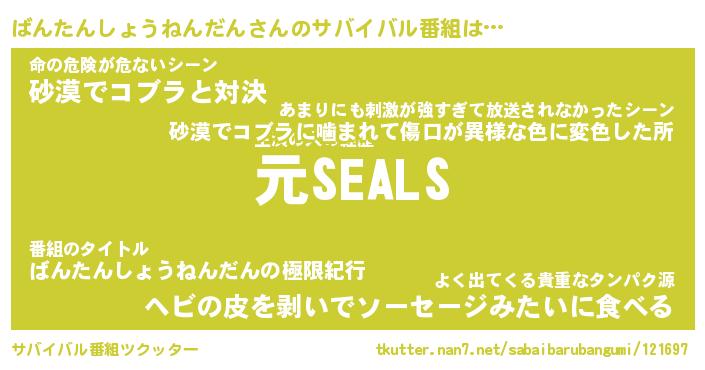 | ツイッター | ばんたんしょうねんだんさんのツイッターID『namakemono_man』 |