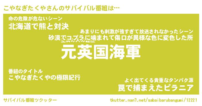 | 伝説のあだ名 | 『伝説のスナイパーこやなぎたくや』 |