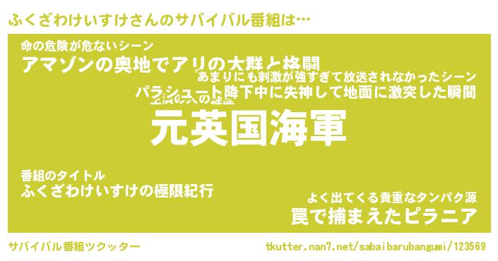 | 胡散臭い通販商品みたいなあだ名 | 『必ず成功するブレスレット…その名も「ふくざわけいすけ」』 |