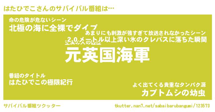 | 伝説のあだ名 | 『伝説の傭兵はたひでこ』 |