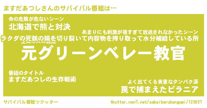 | ヒーロー風カッコイイあだ名 | 『スーパーマスダアツシ』『炎刃騎士マス』 |