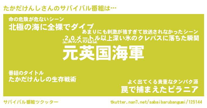 | 伝説のあだ名 | 『伝説のスナイパーたかだけんし』 |