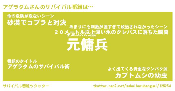 | 伝説のあだ名 | 『封印されしスナイパーアゲラタム』 |