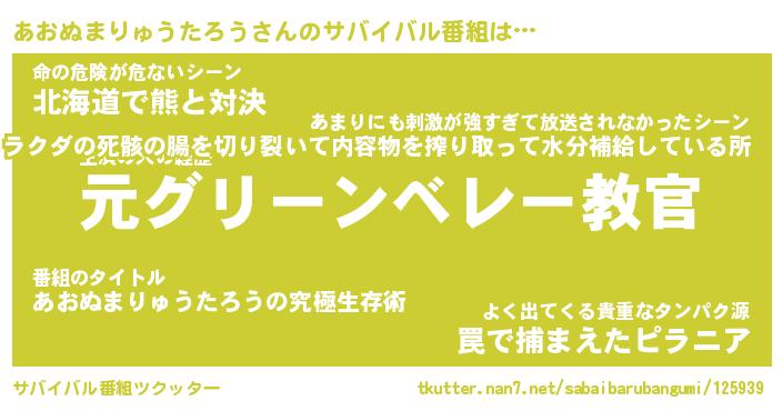 | 肩書あだ名 | 『あおぬまりゅうたろう御曹司』 |