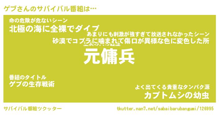 | ヘコむあだ名 | 『ゲブにゅー』『つくし』『ゲブを』 |